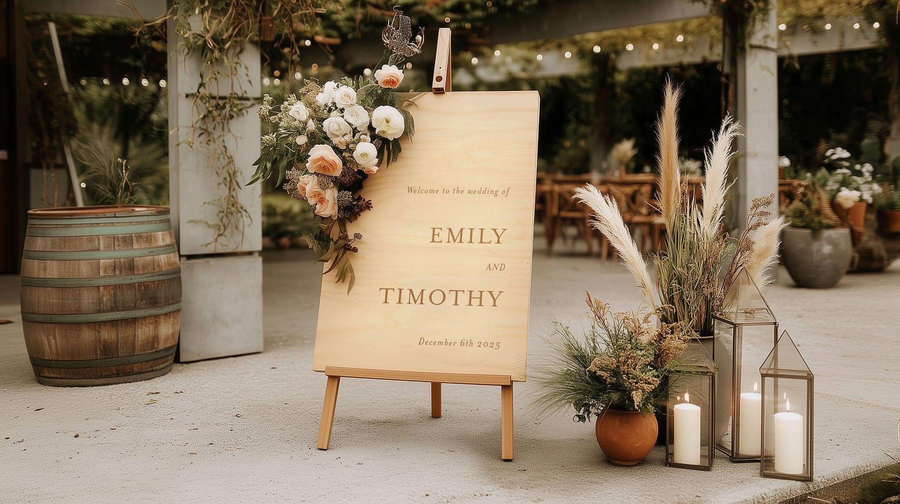 1 x Wedding Signage Pack, including 1x Welcome sign, Table numbers for each table (not exceeding 10 Tables), Personalised place cards for each guest (not exceeding 300 guests), 1x Table menu for each table (not exceeding 10 Tables), 1 Large and 1 Small Bar menu